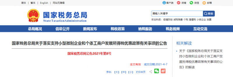 代理記賬公司:近期,國家稅務總局發(fā)布了《關于落實支持小型微利企業(yè)和個體工商戶發(fā)展所得稅優(yōu)惠政策有關事項的公告》(國家稅務總局公告2021年第8號,以下簡稱《公告》)。