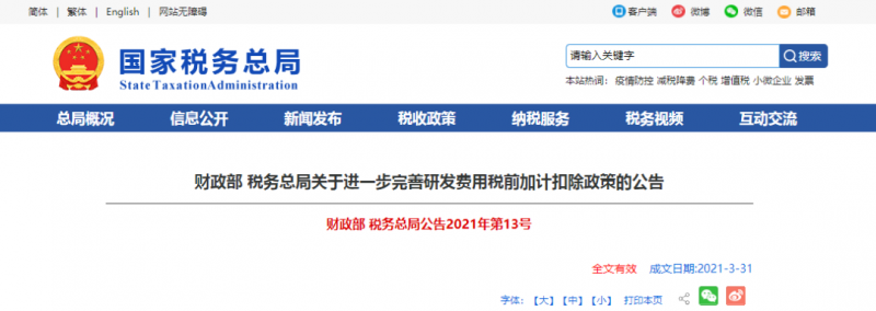 《公告》中明確,制造業(yè)企業(yè)開展研發(fā)活動(dòng)中實(shí)際發(fā)生的研發(fā)費(fèi)用,未形成無形資產(chǎn)計(jì)入當(dāng)期損益的,在按規(guī)定據(jù)實(shí)扣除的基礎(chǔ)上,自2021年1月1日起,再按照實(shí)際發(fā)生額的100%在稅前加計(jì)扣除;形成無形資產(chǎn)的,自2021年1月1日起,按照無形資產(chǎn)成本的200%在稅前攤銷。
