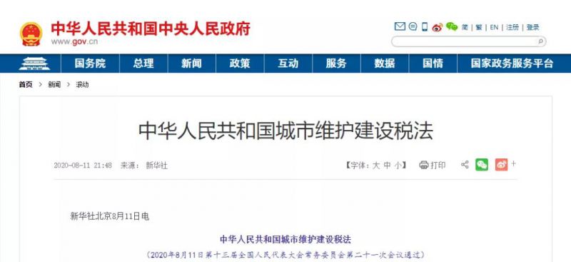 9月1日起,《中華人民共和國城市維護(hù)建設(shè)稅法》和《中華人民共和國契稅法》兩大稅法正式開始施行。